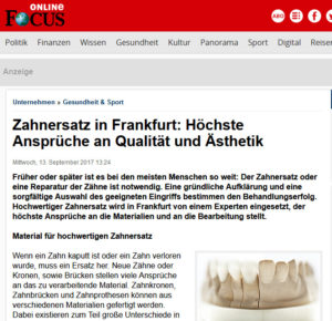 Publikation zum Thema hochwertiger Zahnersatz in Frankfurt auf Focus.de